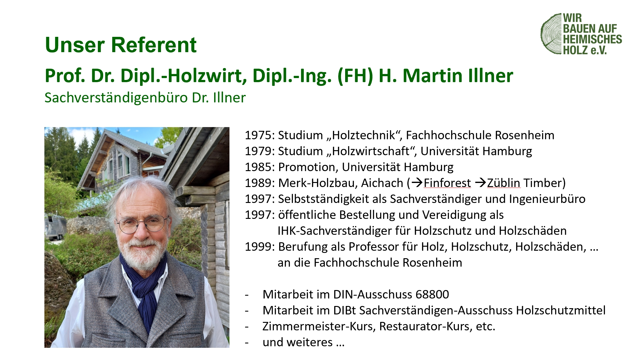 Bei der Initiative „Regionale Holzkette Südostoberbayern“, die der Vorgänger des Vereins „Wir bauen auf heimisches Holz e.V.“ war, hat uns Hugo Wirthensohn vom Holzforum Allgäu unterstützt.
