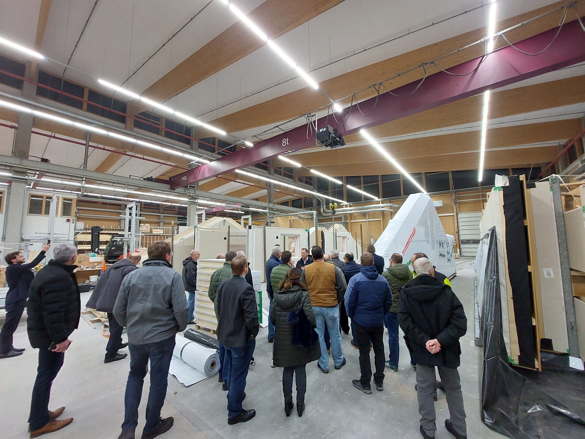 Für das Thema „Bauen mit Holz“ hat sich der Bezirksverband entschieden, mit dem Verein „Wir bauen auf heimisches Holz e.V.“ zu sprechen. Um auch einen Holzbaubetrieb zu besichtigen, fand die Veranstaltung bei Huber & Sohn Holzbau, Holzverarbeitung, Elementebau GmbH & Co. KG in Eiselfing statt. Neben einer Präsentation über die verschiedenen Möglichkeiten des Holzbaus vom Skelettbau, Holzrahmenbau bis hin zum Modulbau präsentierte sich der Verein mit der Vorstellung der Interaktion der Wertschöpfungskette sowie die Max von Bredow Baukultur GmbH mit Beispielen von umgesetzten Projekten.