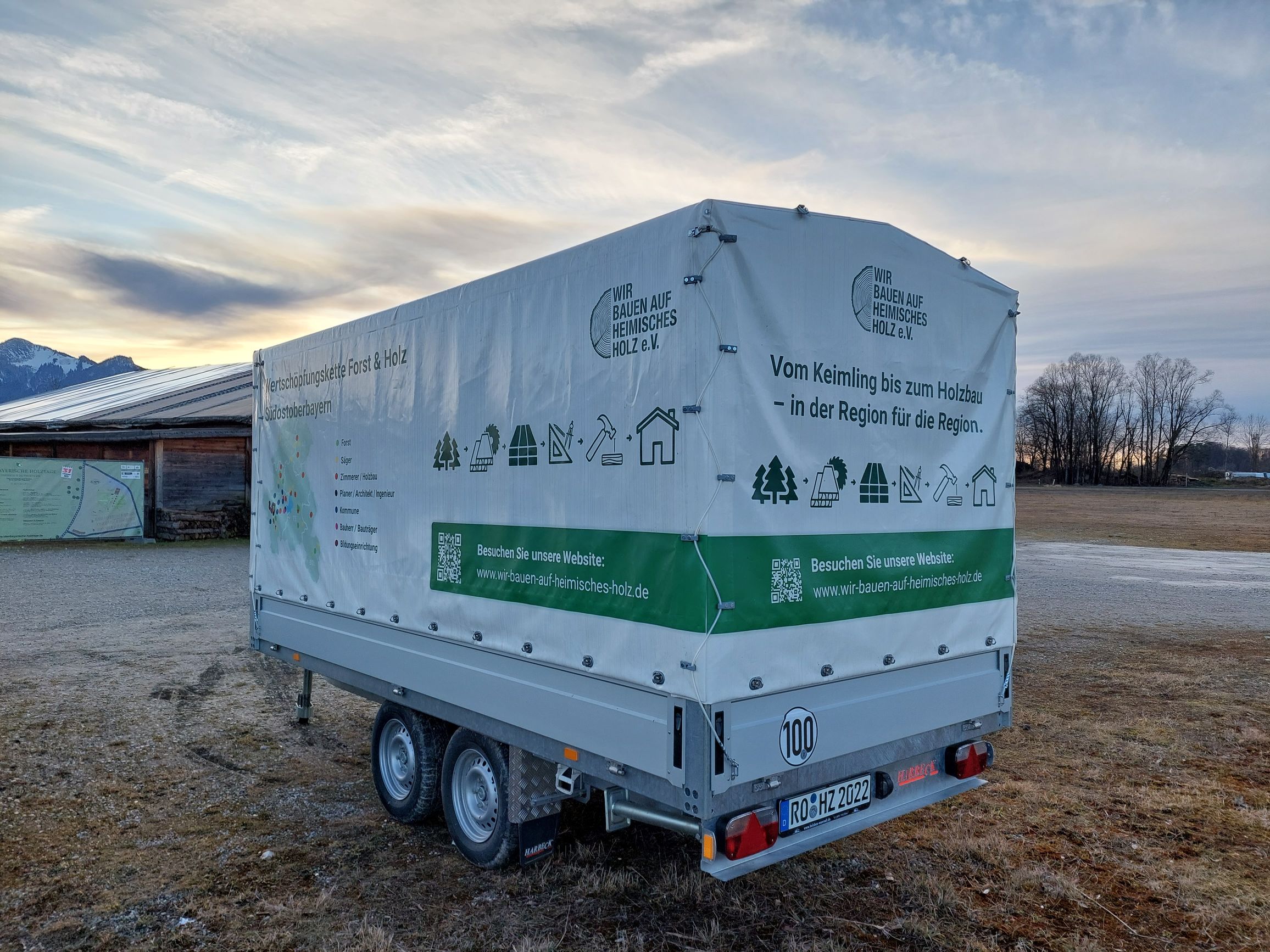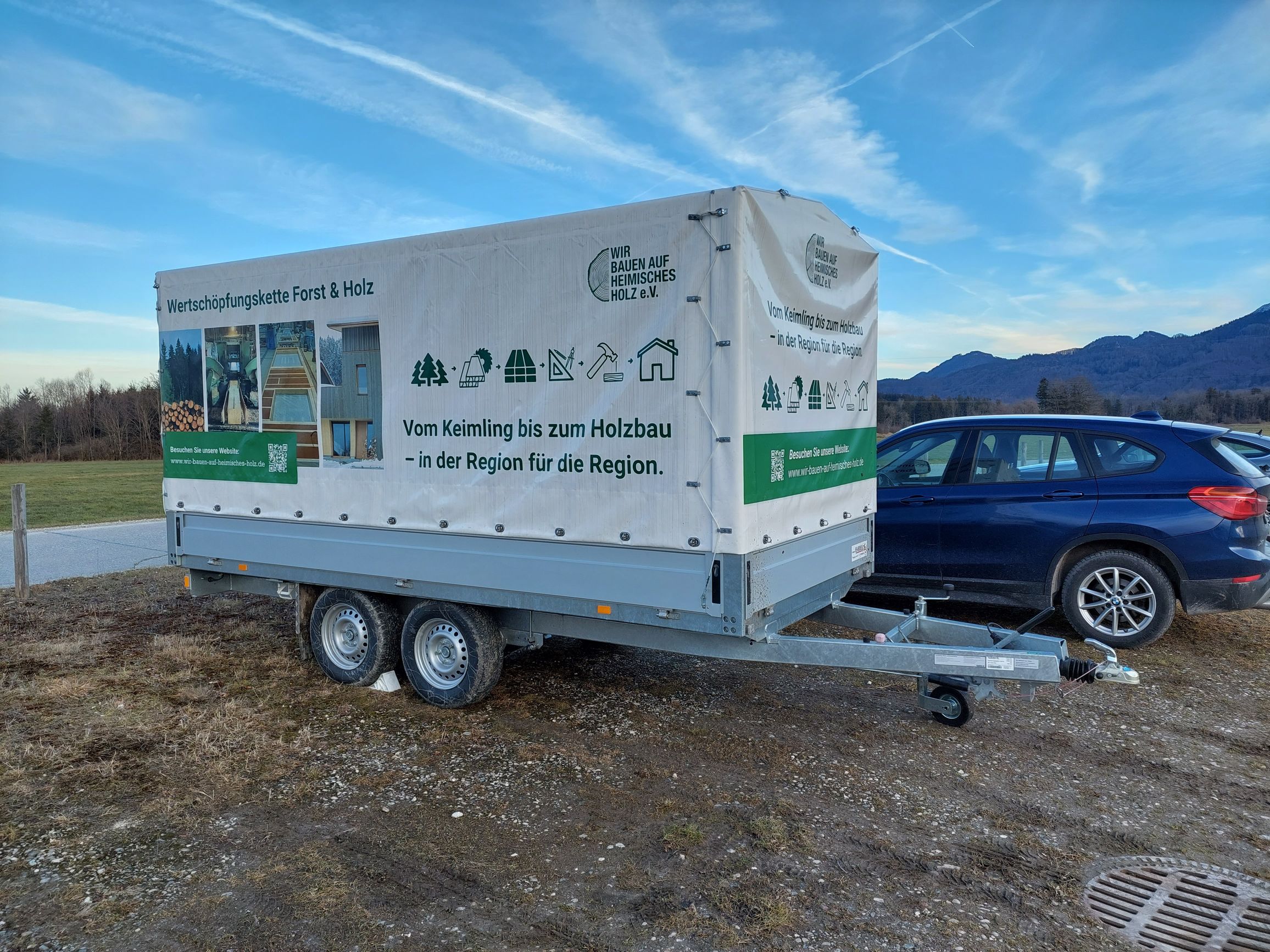 Der Verein „Wir bauen auf heimisches Holz e.V.“ besitzt einen Messestand, mit dem der Verein auf Veranstaltungen präsent ist.