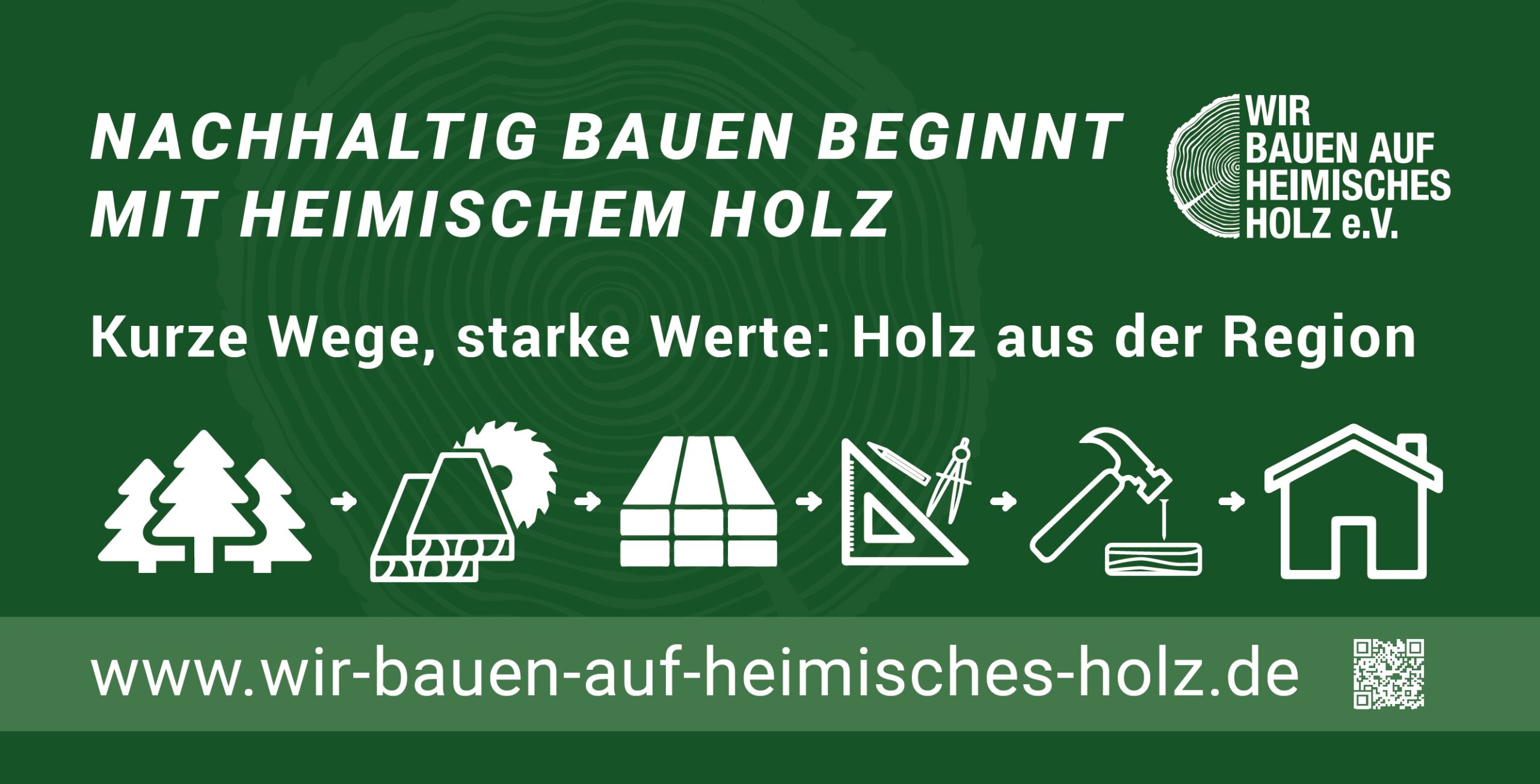 Der Verein „Wir bauen auf heimisches Holz e.V.“ hat Bauzaunbanner entworfen die für Veranstaltungen gebucht werdne können oder eben auch an Bauvorhaben vor Ort auf der Baustelle angebracht werdne können, wo heimisches Holz verbaut wird.
