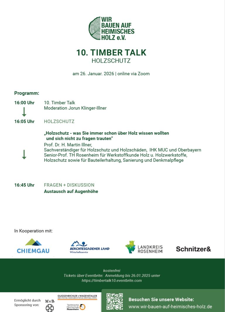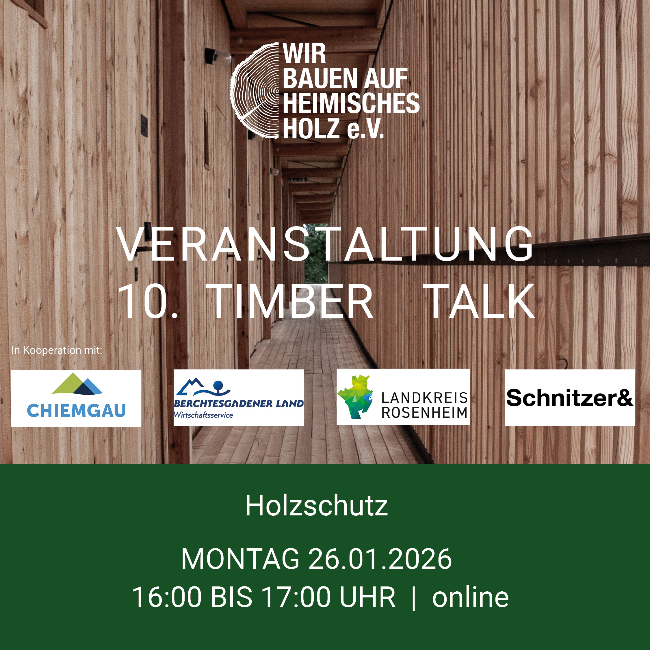 Der 10. TimberTalk am Mo. 26. Januar 2026 um 16 Uhr befasst sich mit dem Thema: